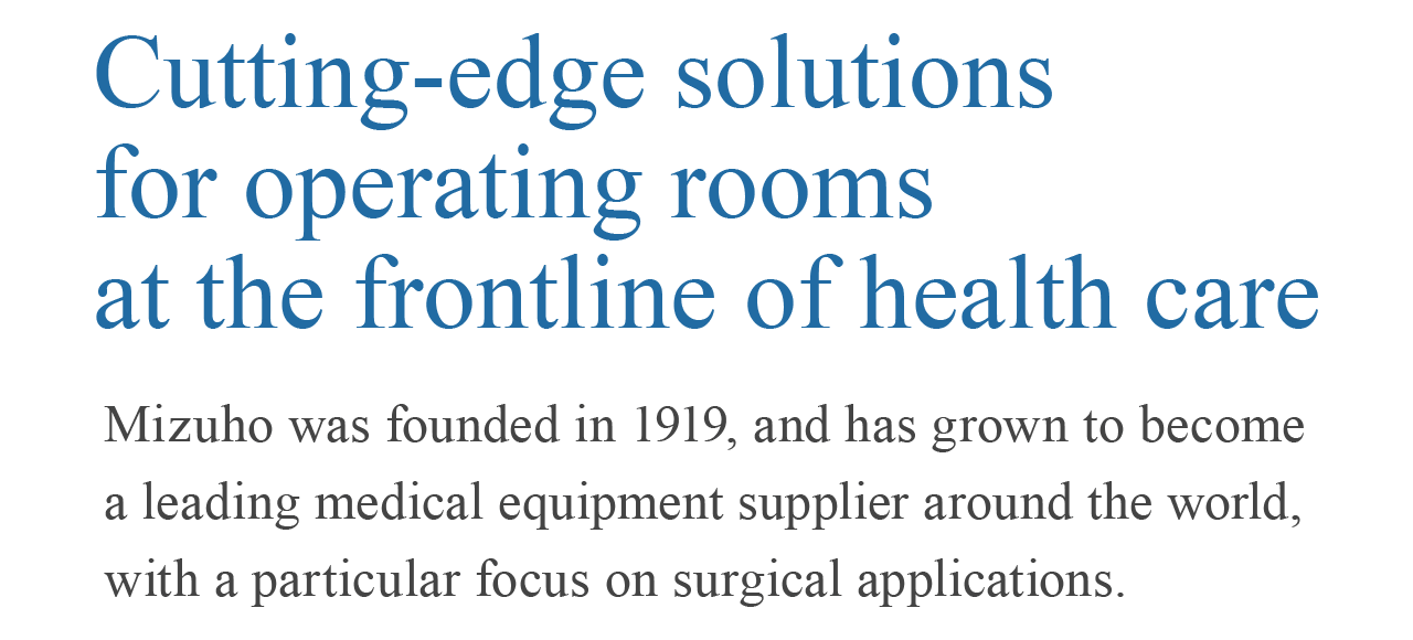 Founded in 1919, Mizuho is a leading supplier of medical equipment in Japan and around the world.