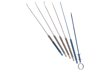 Dissector with various tip shapes such as square, round, and hook. Available only in Japan.