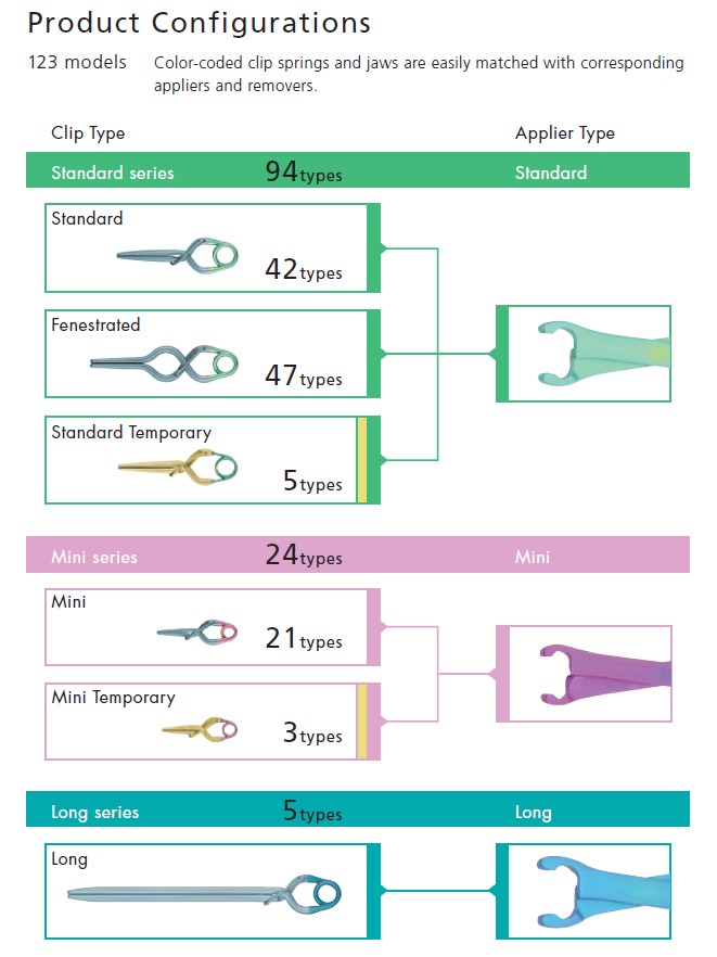 • Lower spring profile than conventional Sugita Aneurysm Clip